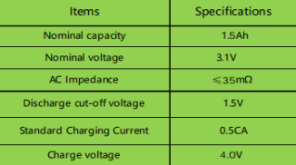 • Excellent High Rate Discharge Performance: 90% discharge at 6C with minimal temperature increase.